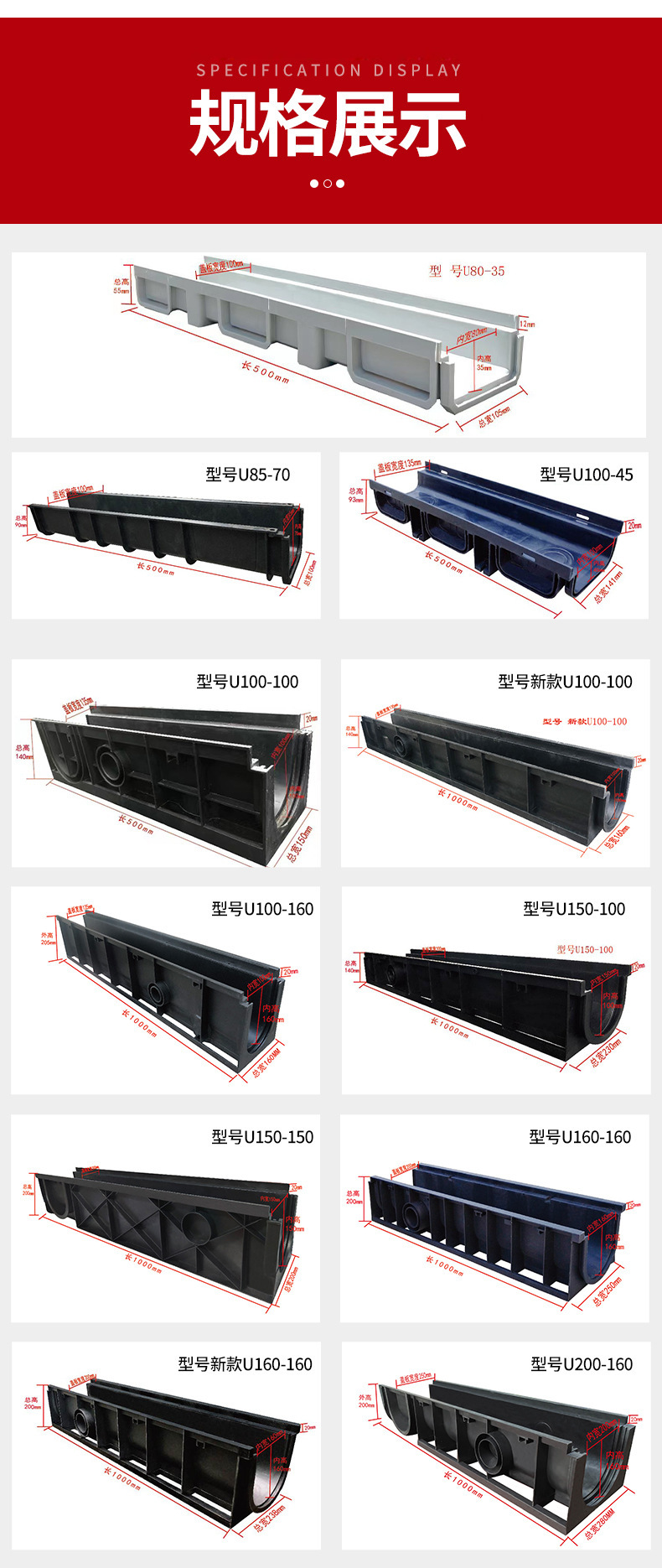U80-35-500 塑料排水溝